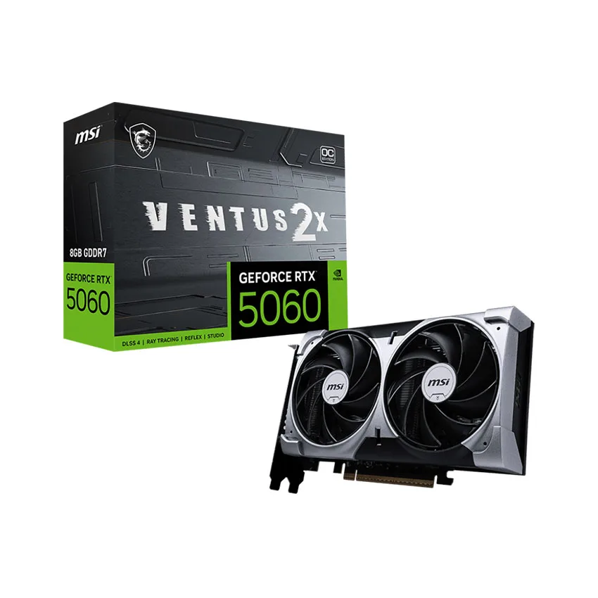 Card màn hình GeForce RTX™ 5060 8G VENTUS 2X OC là lựa chọn tối ưu cho game thủ, nhà sáng tạo nội dung và môi trường văn phòng cao cấp. Sản phẩm thuộc danh mục Linh Kiện Máy Tính, VGA – Card Màn Hình, VGA NVIDIA, GeForce RTX 50 Series, nổi bật với kiến trúc NVIDIA Blackwell, bộ nhớ GDDR7 tốc độ cao và khả năng hỗ trợ đa màn hình văn phòng hiện đại. Ngay từ khi ra mắt, card màn hình GeForce RTX™ 5060 8G VENTUS 2X OC đã thu hút sự quan tâm lớn nhờ hiệu năng vượt trội và thiết kế bền bỉ, phù hợp cho cả gaming 1440p, thiết kế đồ họa lẫn giải trí đa phương tiện.