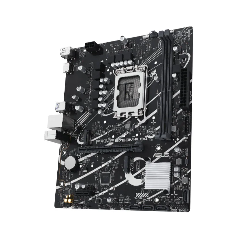 Mainboard Asus PRIME B760M-F DDR4 hỗ trợ socket LGA 1700, tương thích với các CPU Intel Core, Pentium Gold và Celeron từ thế hệ 12 đến 14, cùng công nghệ Intel Turbo Boost 2.0 và Turbo Boost Max 3.0 (tùy dòng CPU). Sản phẩm sử dụng bộ nhớ DDR4 với 2 khe DIMM, dung lượng tối đa 64GB, hỗ trợ tốc độ lên đến 5333MHz (OC) khi ép xung và Intel Extreme Memory Profile (XMP), mang lại hiệu suất ổn định cho các tác vụ đa nhiệm và chơi game.