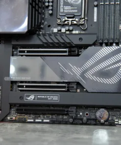 Hệ thống lưu trữ hỗ trợ tối đa 5 khe cắm M.2 NVMe, trong đó có một khe đạt chuẩn PCIe 5.0 x4 thông qua card mở rộng ROG Hyper M.2 đi kèm. Tốc độ đọc ghi lý thuyết có thể đạt tới 14GB/s với ổ SSD tương thích, nhanh gấp đôi so với chuẩn PCIe 4.0. Tất cả các khe M.2 đều được trang bị hệ thống tản nhiệt riêng biệt cùng cơ chế Q-Latch cho phép lắp đặt không cần vít, tiết kiệm thời gian khi nâng cấp hoặc bảo trì.