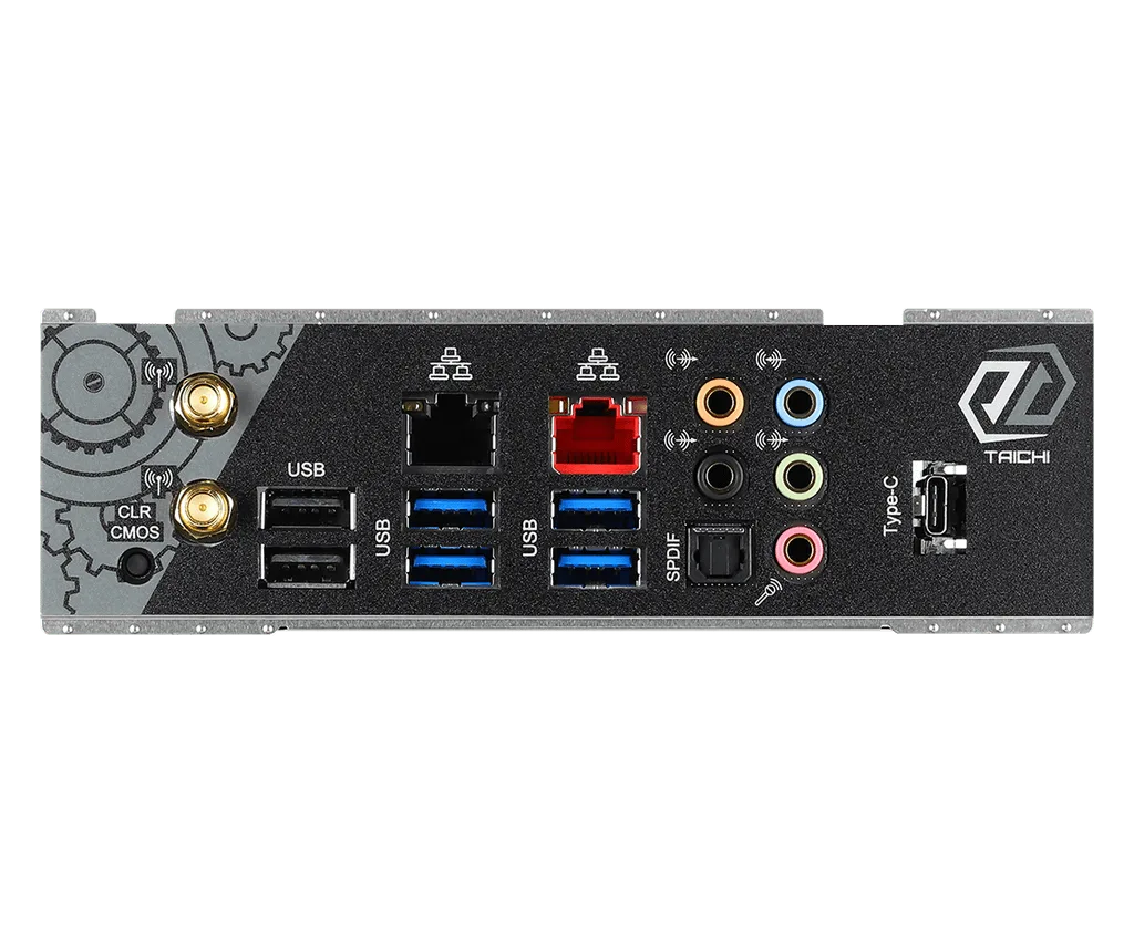 | Kết nối I/O bên trong | - 2 x Antenna Ports - 1 x Optical SPDIF Out Port - 2 x USB 2.0 Ports (Supports ESD Protection) - 1 x USB 3.2 Gen2x2 Type-C Port (20 Gb/s) (ASMedia ASM3242) (Supports ESD Protection) - 4 x USB 3.2 Gen1 Ports (Supports ESD Protection) - 2 x RJ-45 LAN Ports with LED (ACT/LINK LED and SPEED LED) - 1 x Clear CMOS Button - HD Audio Jacks: Rear Speaker / Central / Bass / Line in / Front Speaker / Microphone (Gold Audio Jacks) |