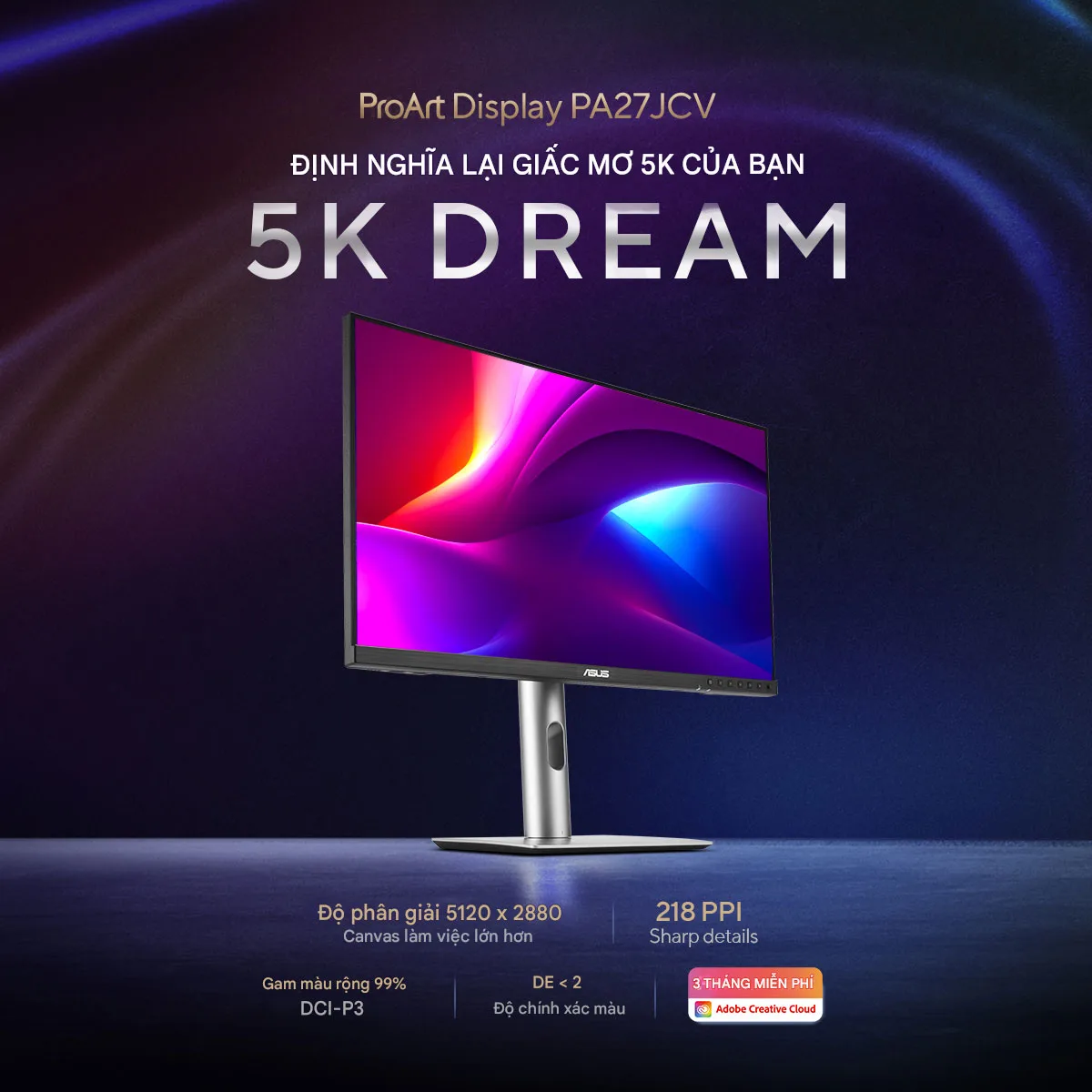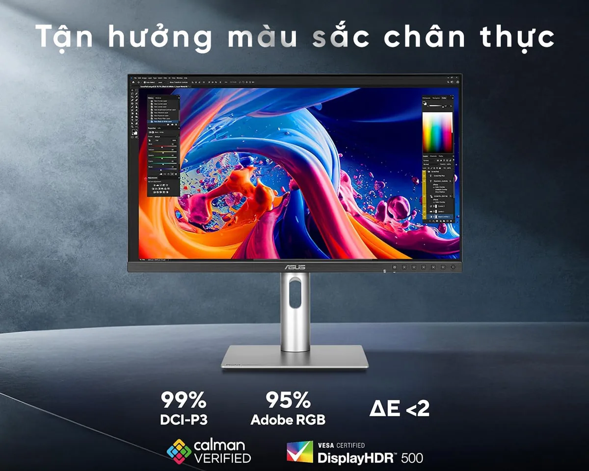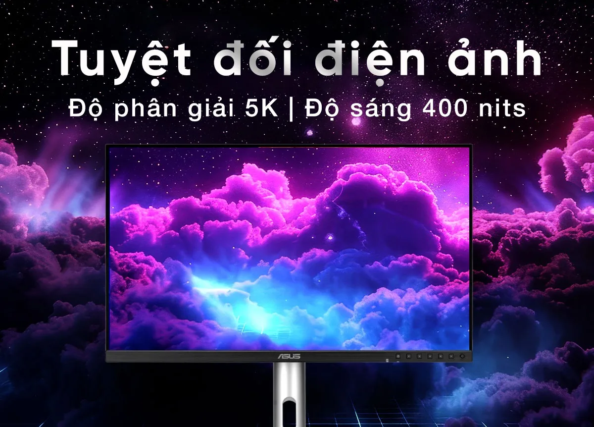 Điểm nhấn giá trị nhất của ASUS ProArt PA27JCV chính là độ phân giải 5K (5120 x 2880) trên kích thước 27 inch. Mật độ điểm ảnh dày đặc này mang lại một không gian làm việc vô cùng chi tiết, cho phép bạn xem trước video 4K mà vẫn còn đủ diện tích cho các thanh công cụ chỉnh sửa. Giờ đây, việc tinh chỉnh những chi tiết nhỏ nhất trong ảnh hay bản vẽ kỹ thuật không còn đòi hỏi phải phóng to liên tục, giúp quy trình làm việc trở nên liền mạch và hiệu quả.