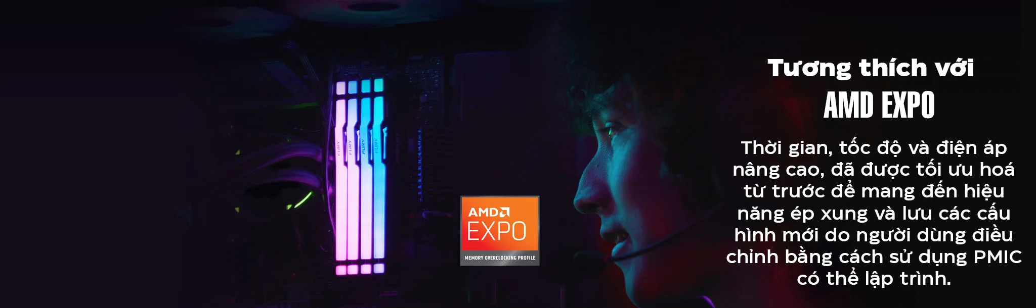 RAM và kit RAM DDR5 của Kingston FURY có tích hợp AMD EXPO (Công nghệ Extended Profiles của AMD để ép xung) được tự xác nhận trên bo mạch chủ AM5. Quy trình tự xác nhận là một lớp thử nghiệm độ tương thích bổ sung mà các kỹ sư bộ nhớ của Kingston áp dụng để chứng minh mức độ hỗ trợ rộng rãi trên các nền tảng DDR5 của AMD. Ép xung dựa trên cấu hình là một phương thức an toàn và đã được minh chứng trong việc tối ưu hóa hiệu năng của bộ nhớ hệ thống. Để biết được DDR5 nào của Kingston FURY cùng giải pháp EXPO nào là phù hợp nhất cho hệ thống AM5 của bạn, hãy tham khảo bộ cấu hình của Kingston hoặc kiểm tra danh sách nhà cung cấp đủ điều kiện (QVL) để tìm nhãn hiệu và model bo mạch chủ cụ thể của bạn.