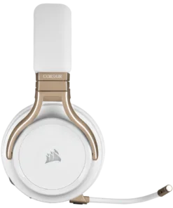 Phần micro của tai nghe Corsair Virtuoso RGB Wireless Pearl có thể tháo rời, giúp bạn thoải mái gắn hoặc tháo ra khi không sử dụng, đem lại sự gọn gàng hơn những chiếc tai nghe wireless.