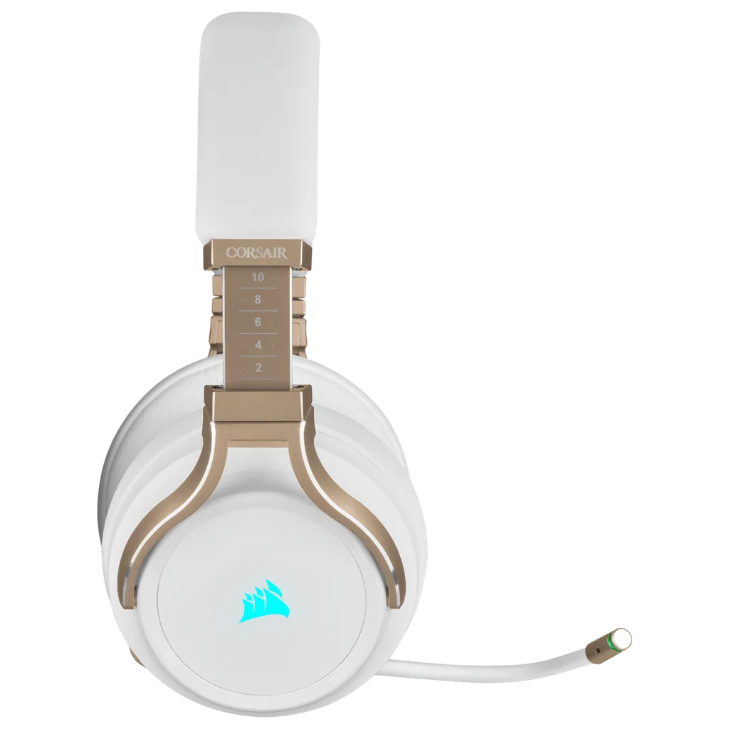 Tai nghe Corsair Virtuoso RGB Wireless Pearl khoác lên gam màu Pearl sang trọng đi cùng cấu trúc hoàn hảo gia công từ nhôm đem lại sự thoải mái, gọn nhẹ cho chiếc tai nghe.
